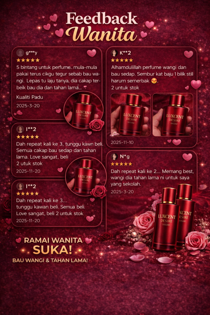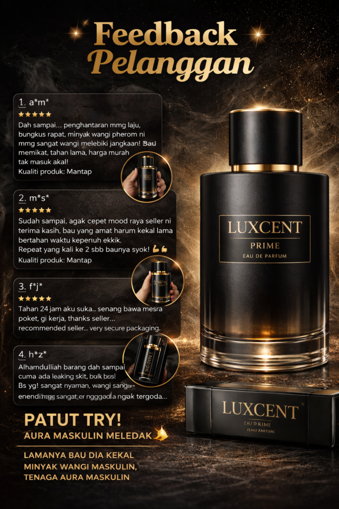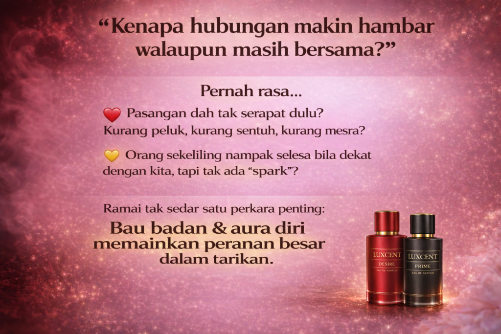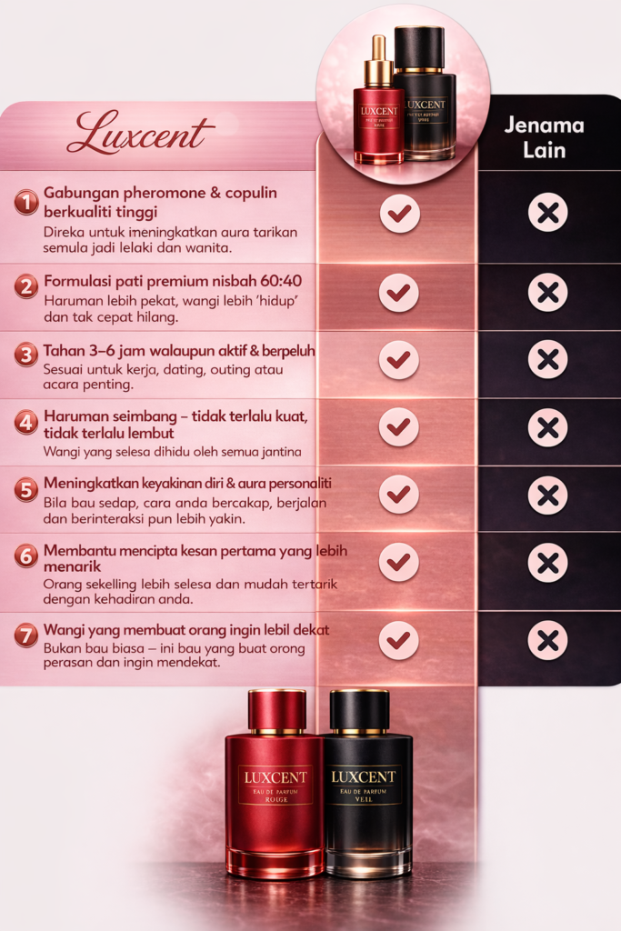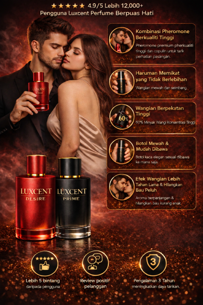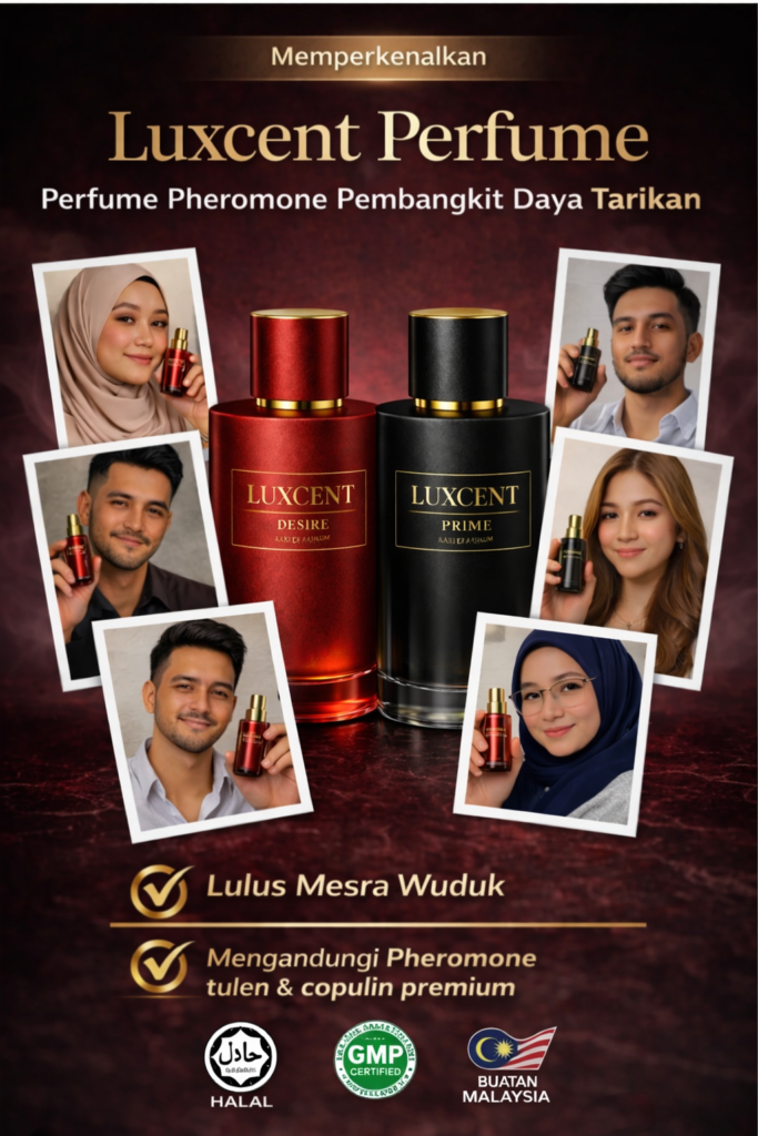 Formulasi Eksklusif Perfume Luxcent yang Terbukti Membantu Meningkatkan Aura Tarikan, Keyakinan Diri dan Keserasian Antara Lelaki & Wanita.